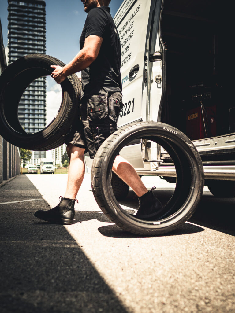 Welcome to Mobile-Tire, your trusted mobile tire & rim service and sales provider in the Greater Toronto Area. Our certified automotive tire service technicians deliver safe and convenient services and products, including new tire and rim sales, tire changes, wheel swaps, permanent tire repairs, wheel balancing, and tire storage solutions, all at your home, office or parking lot. Contact a client service advisor today by phone, text, or email to get started. We Come to You.